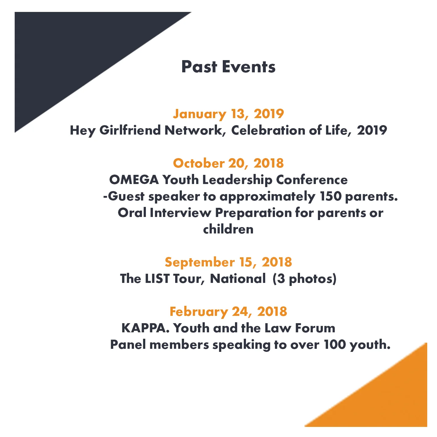 Past Events Here are a few of our past events Natalie GipsonJanuary 1, 2019 Facebook0 Twitter LinkedIn0 0 Likes